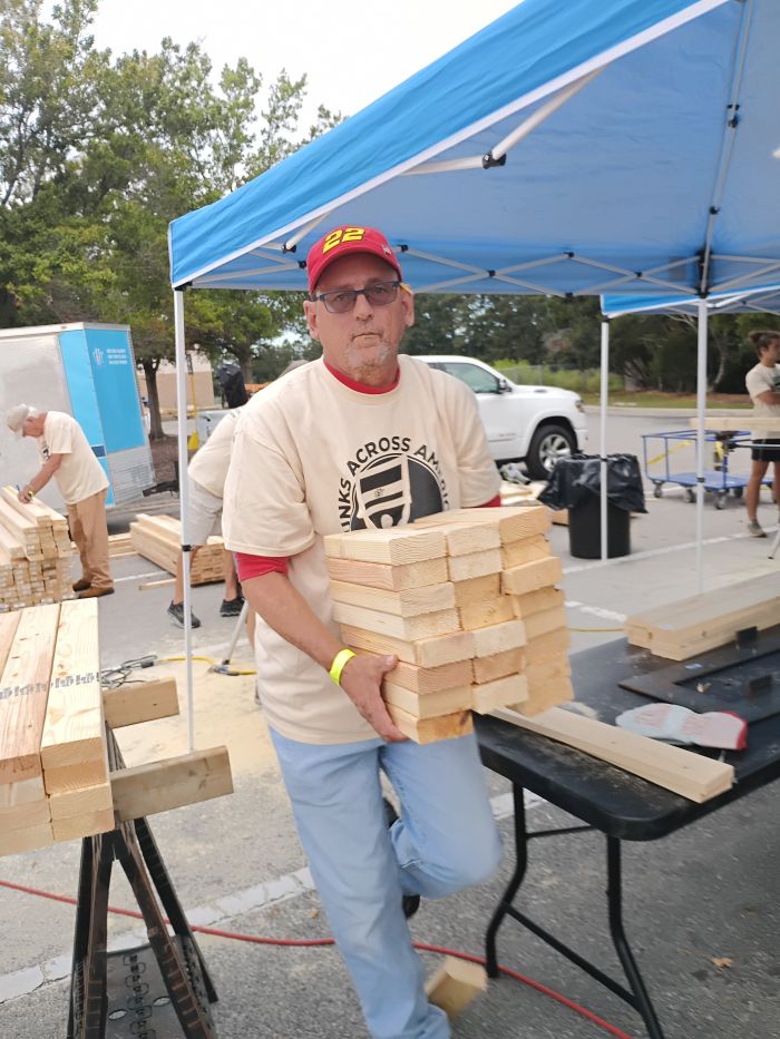 Three brother knights were at the Bunks Across America build day as part of Sleep in Heavenly Peace. This build was sponsored locally by Lowe's. About 100 beds were built from scratch taking the local chapter of Sleep in Heavenly Peace to over 1,000 beds since they began three years ago.