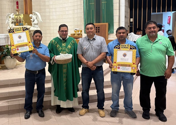 The Latino Roundtable, lead by brother Nector Diaz, presented Fr. Cesar with $2,000 in gift cards for back-to-school supplies for families in need at the conclusion of the Spanish Mass Sunday. They received a standing ovation from the Mass attendees.