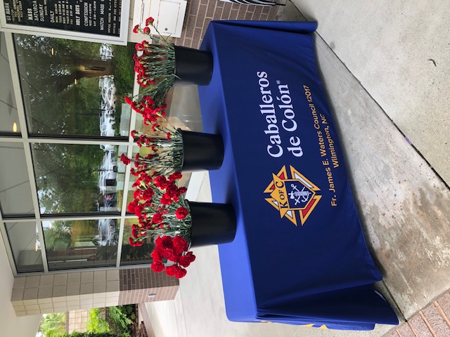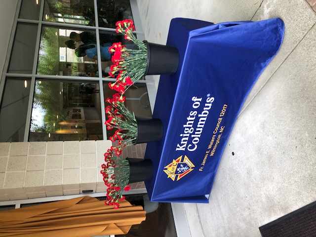Red carnations awaited all mothers as they left church after all the Masses on Mothers Day weekend.